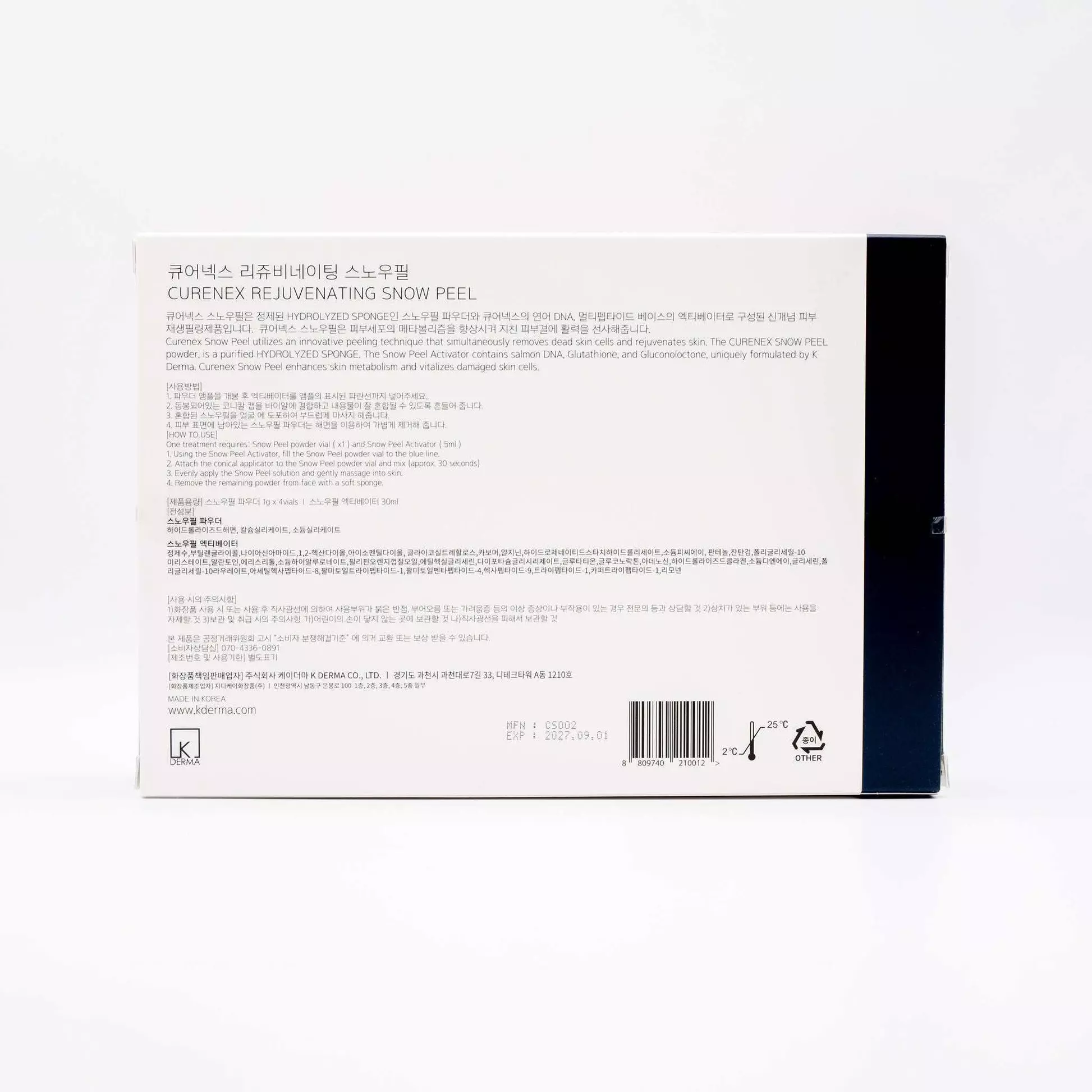 Curenex Snow-Peel with Salmon DNA is a professional skin peeling treatment that gently exfoliates, rejuvenates, and brightens the skin. It contains salmon DNA as its main active ingredient, which promotes collagen production, improves elasticity, and restores healthy skin structure.