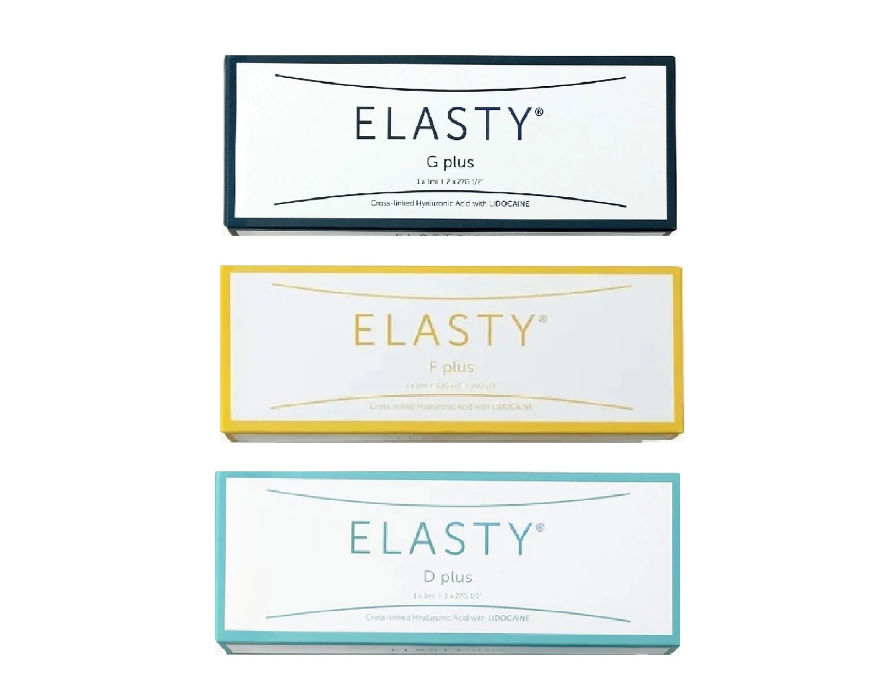 Elasty D With Lidocaine 1 syringes ,Elasty D Without lidocaine ,Elasty F With Lidocaine 1 syringes ,Elasty F Without lidocaine ,Elasty G With Lidocaine 1 syringes ,Elasty G Without lidocaine |
